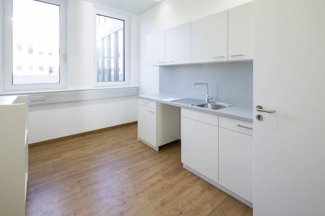 • Innenarchitektonische Gestaltung und Erstausstattung einer Hausarztpraxis im Gesundheitszentrum Vincentinum.