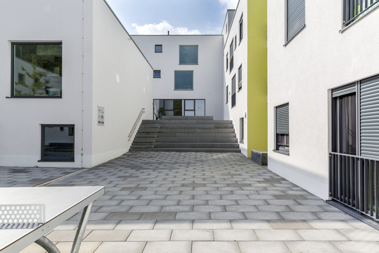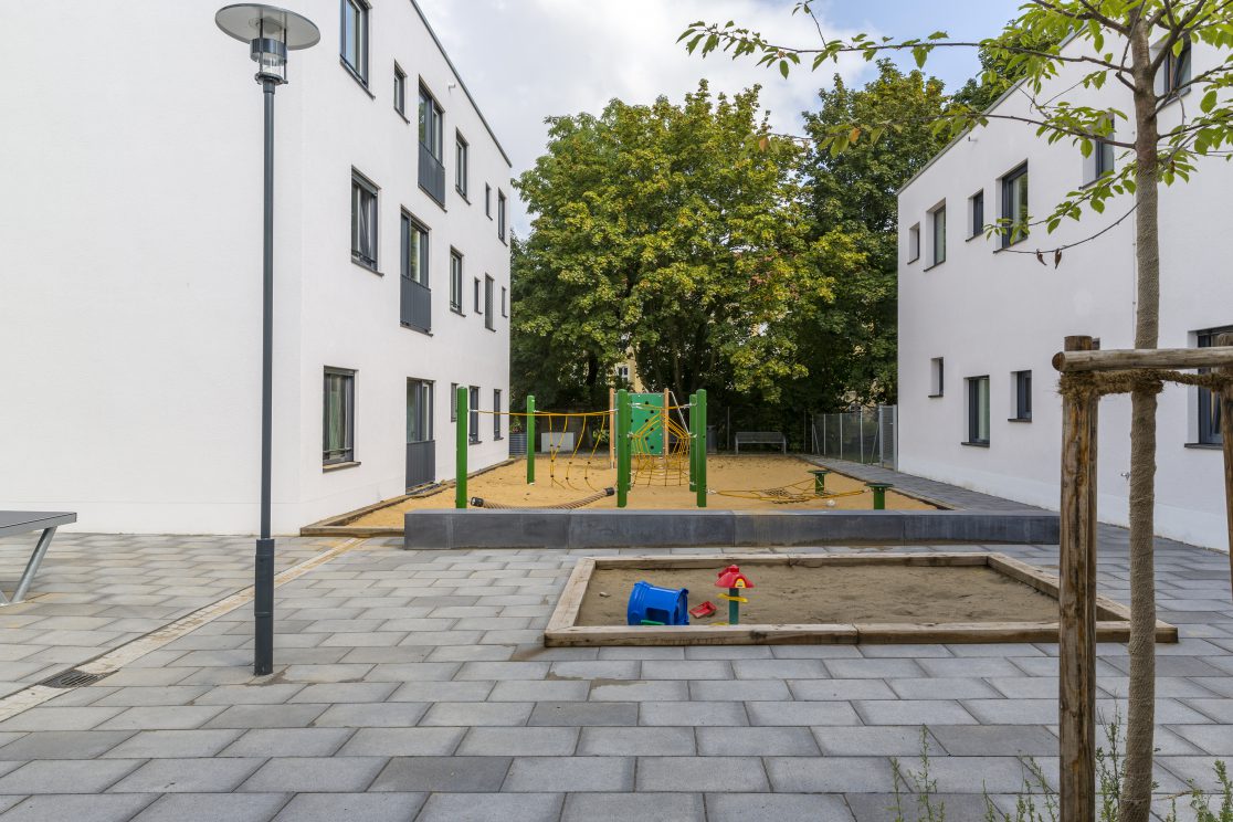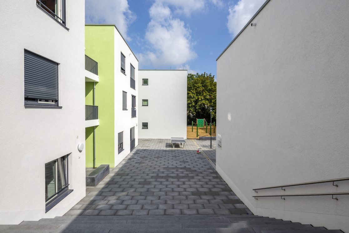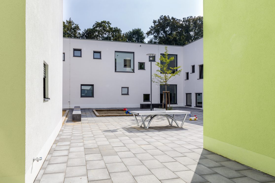 - Neubau einer modellhaften Einrichtung mit 28 barrierefreien bzw. behindertengerechten Wohnungen, Betreuungsräumlichkeiten, einem Gemeinschaftsbereich, einem „Tante-Emma-Laden“ mit Cafe und einer Kindertagesstätte mit zwei Krippen-/eine Kindergarten- und eine Hortgruppe.